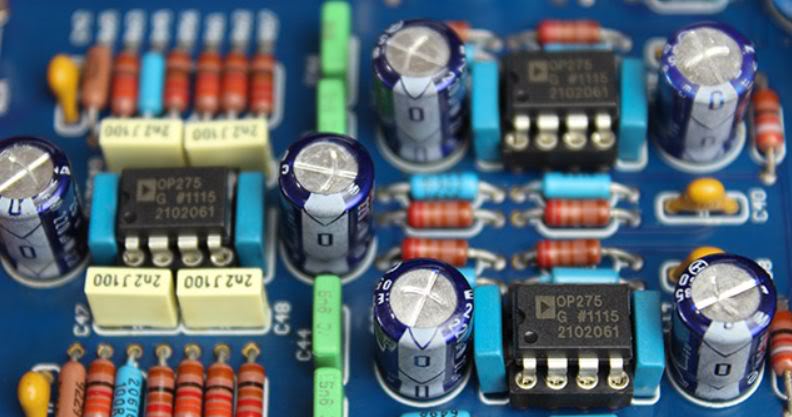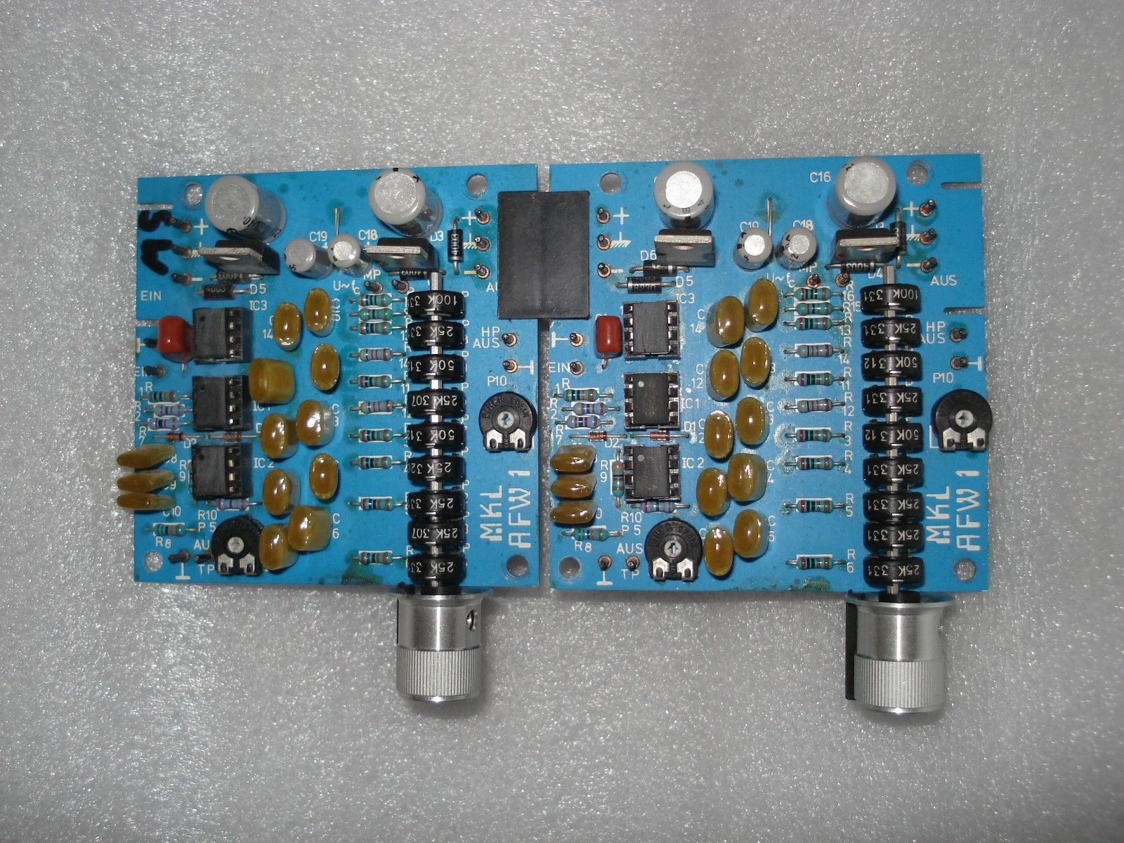 2008 = Austausch aller Aktivweichen und Vorstufen OP Amps (26Stk.) gegen Burr Brown OPA2604 Typen.